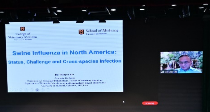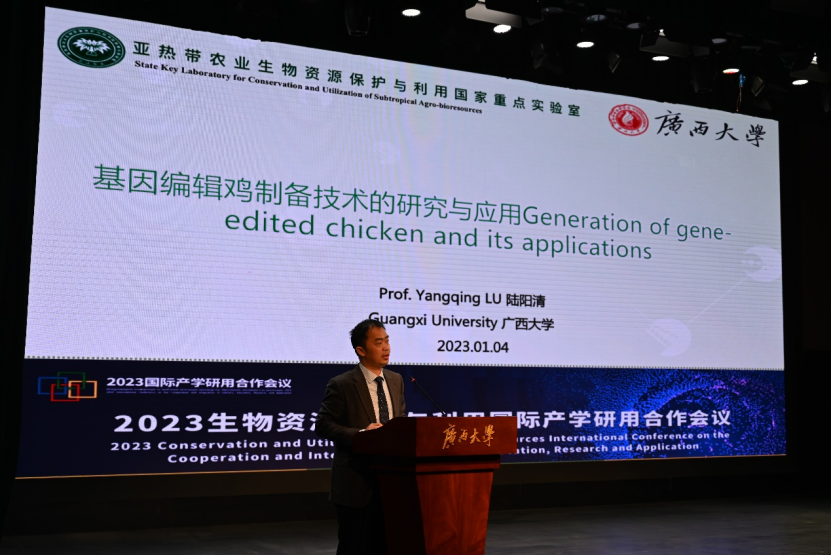 其中, “生物资源保护与利用产学研用国际合作研讨会”由tyc7111cc太阳成集团联合林学院承办,分论坛第一阶段的学术报告由我院常务副院长陆阳清教授主持。共邀请了国内外5位专家进行学术报告,围绕畜禽育种和健康养殖展开研讨。来自加拿大阿尔伯塔大学Leluo Guan教授从提高牛可持续发展的新型技术方面做了“提高牛生产可持续性的新型组学解决方案”的精彩报告;河南守望之境生物技术公司刘红波博士的报告“体细胞核移植技术在农业、生物医学及伴侣动物克隆中的商业应用”对近年来团队利用克隆技术成功克隆的牛、羊、宠物等动物的产业化与应用进行了展示;我院陆阳清教授的“基因编辑鸡的研究与应用”报告,充分展示了课题组近年来在国内外首次建立了高效的鸡原始生殖细胞分离培养体系,为家禽种质资源保存和新品种创制提供了细胞平台。针对畜禽健康养殖,来自美国密苏里大学的Wenjun Ma教授做了题为“北美猪流感:现状、挑战和跨种感染”,从猪流感的流行现状、跨种传播等进行了深入的讲解,并提出预警机制。中国农业大学徐闯教授根据多年来从事奶牛群发代谢病的致病机理、早期预警、群防群控、技术标准等技术产品的研发推广工作,进行了“天然植物提取物在围产期奶牛代谢病防控中的应用”的精彩报告。