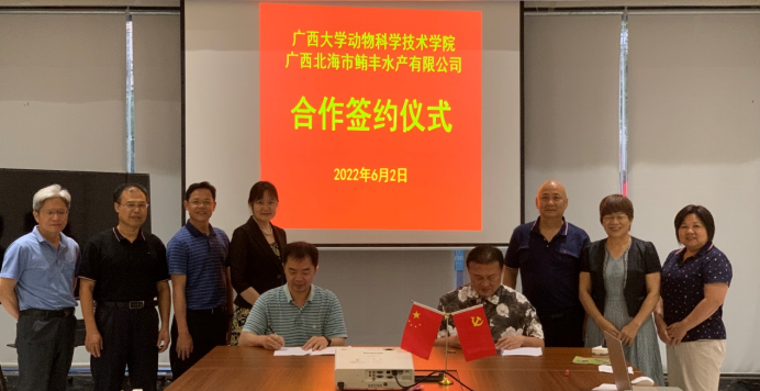 2022年6月2日下午,tyc7111cc太阳成集团(以下简称“我院”)与广西北海市鮪丰水产有限公司(以下简称“广西鮪丰”)签订共建“产学研”合作基地框架协议,双方将本着优势互补、资源共享、共同发展的原则,加强水产养殖人才培养、科学研究和技术推广等方面的交流与合作。