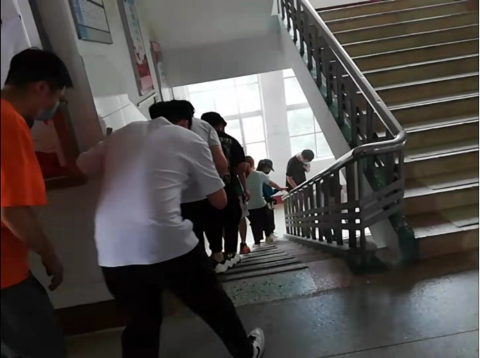 学生进行火灾紧急疏散、逃生演练