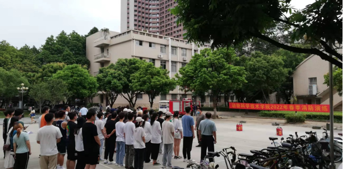 2022年4月29日下午,我校保卫处和动科院联合在动科院大楼前举行消防演练。