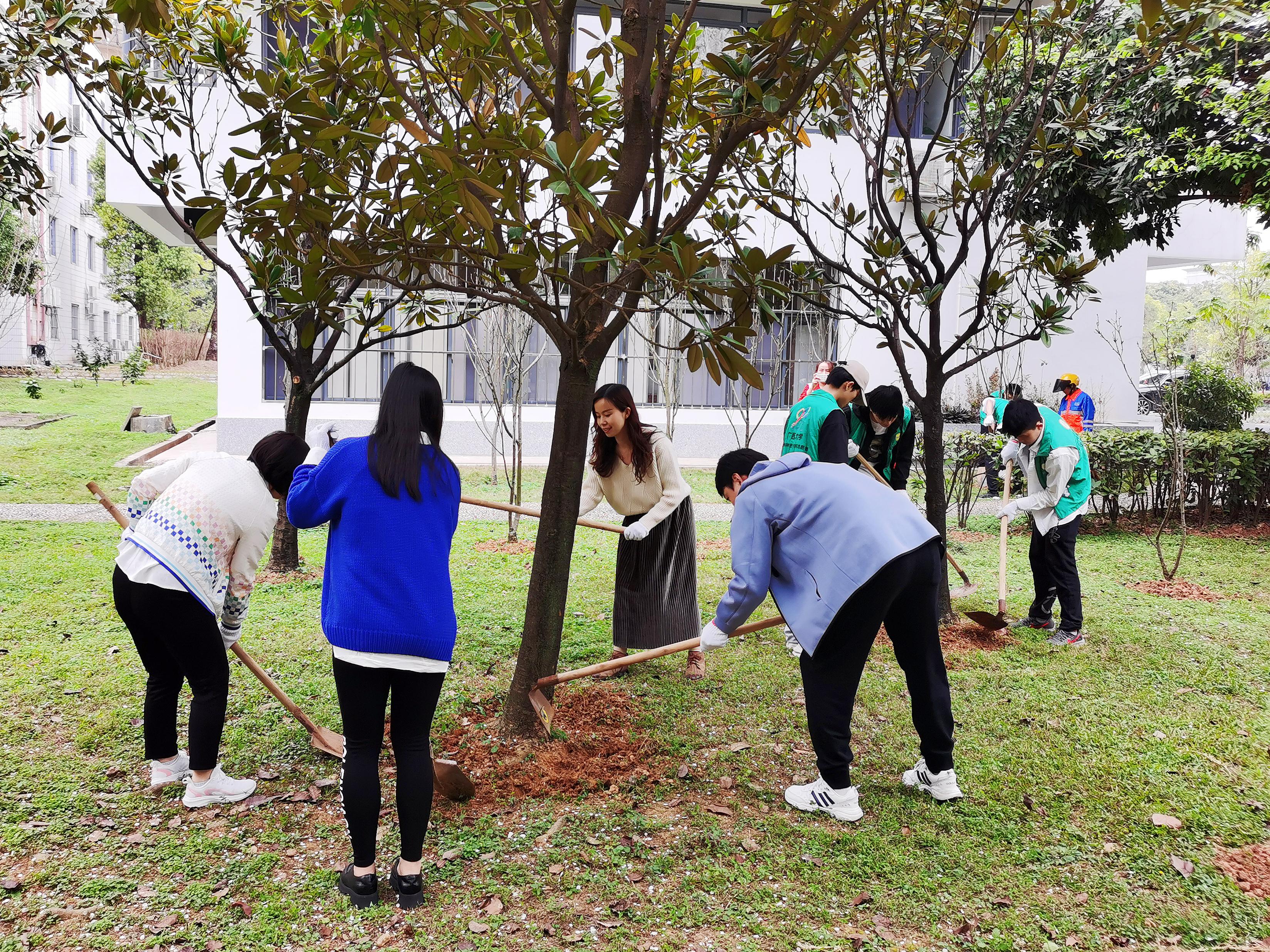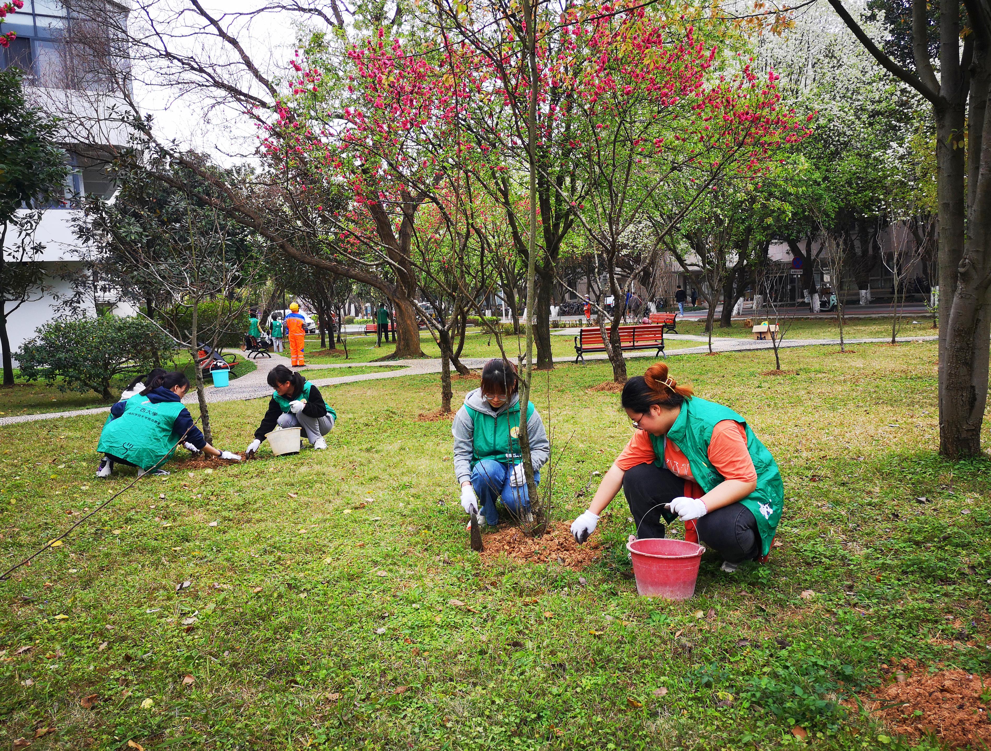阳春三月,百卉含英。3月12日下午,tyc7111cc太阳成集团30余名志愿者来到西校园公共绿地开展“传承雷锋精神,弘扬时代新风”养护树木志愿服务活动。