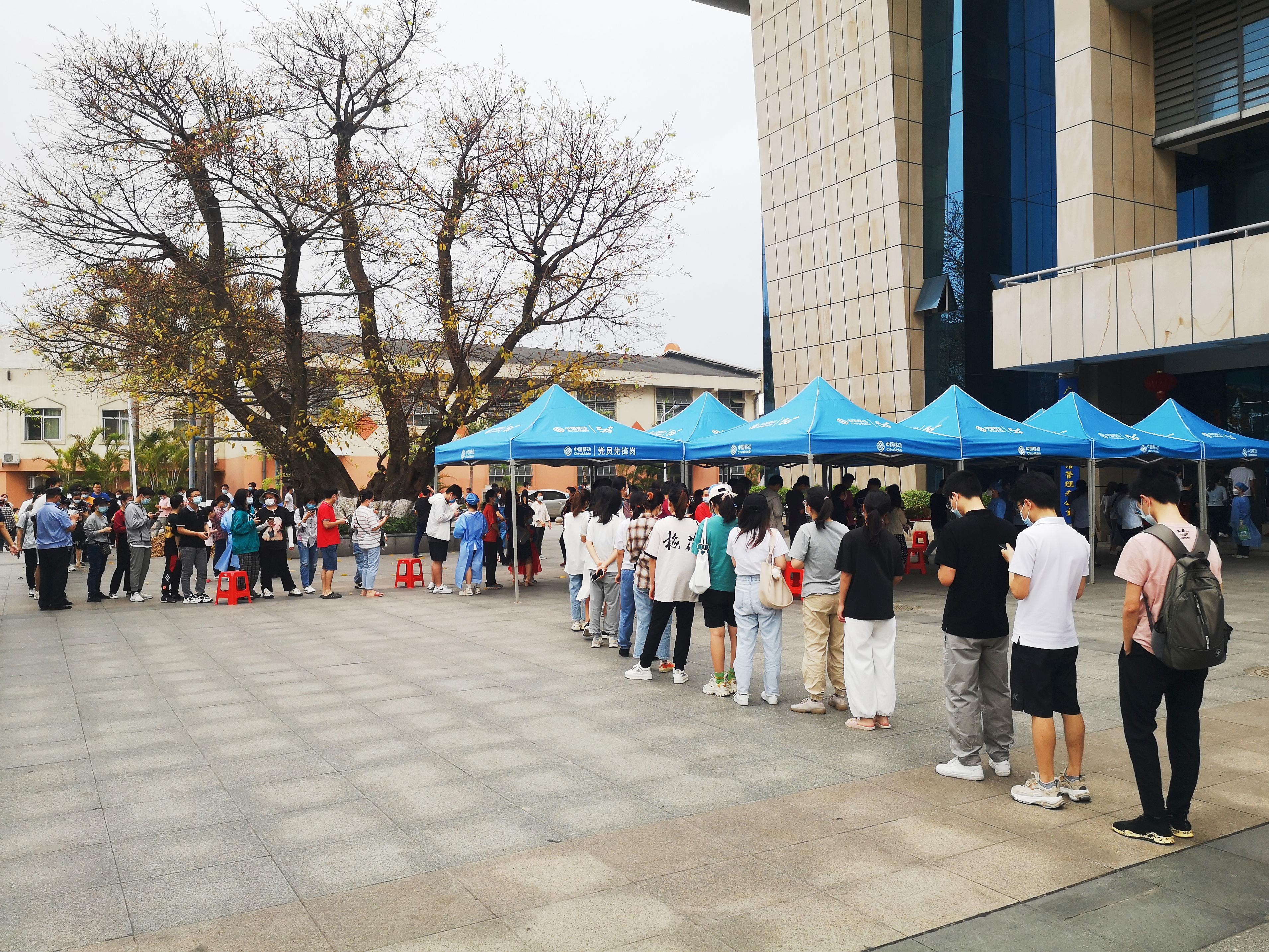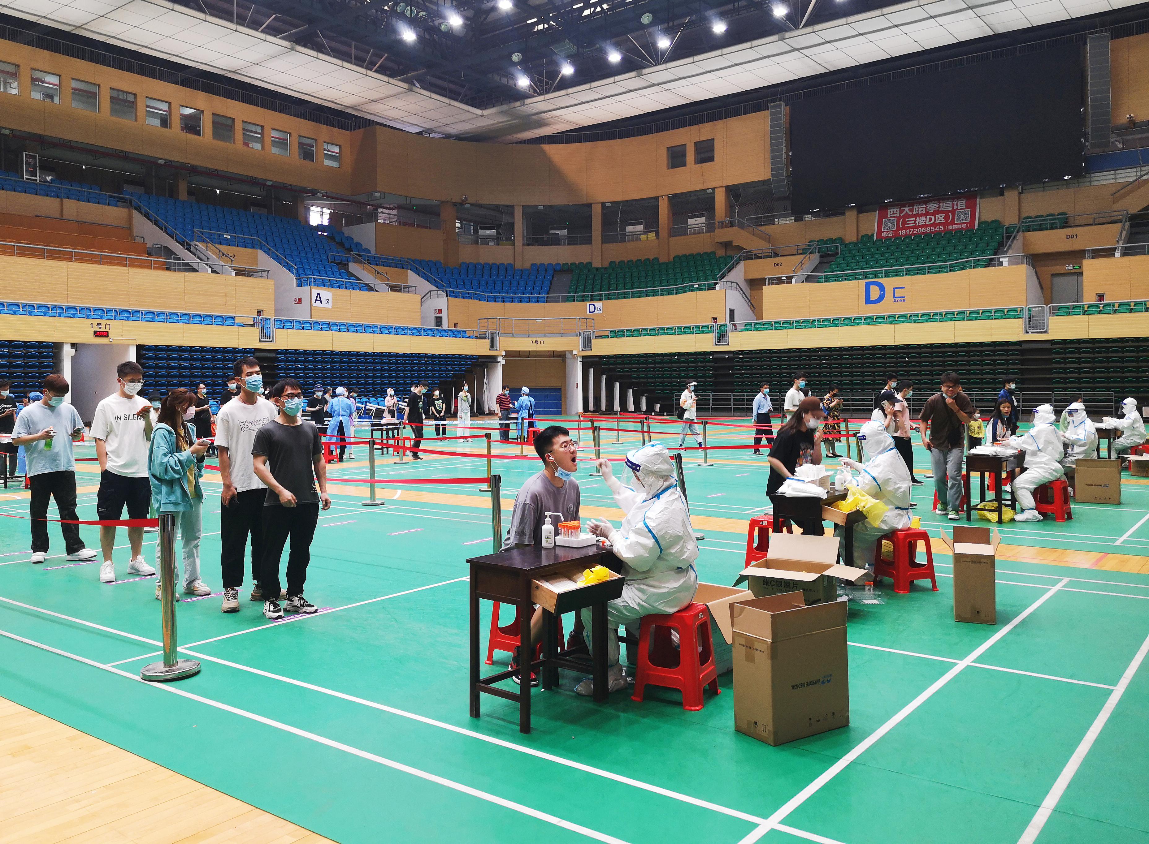同学们自觉佩戴口罩,主动保持间距,按照学校规定的检测时间,分批次、分时段到达采样现场,在医护人员和志愿者的引导下,经体温监测、信息登记后,依次完成了核酸检测咽拭子采样,整个过程井然有序。