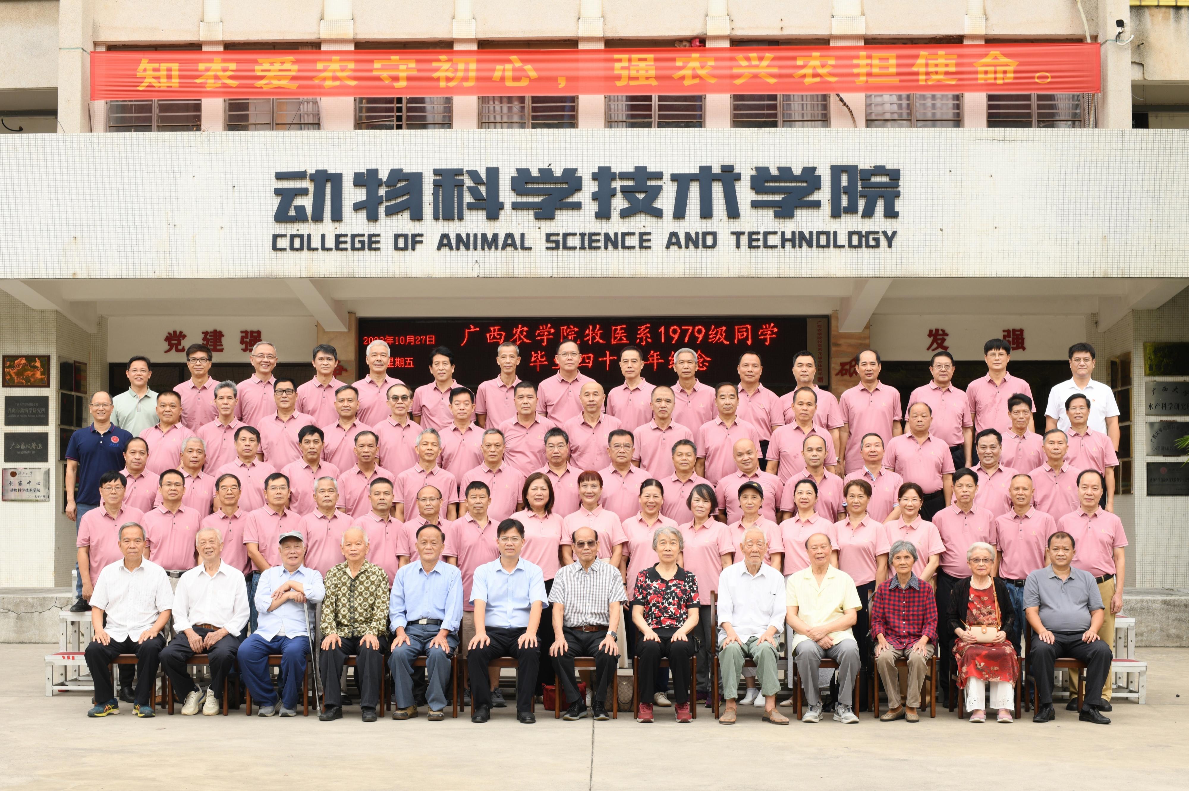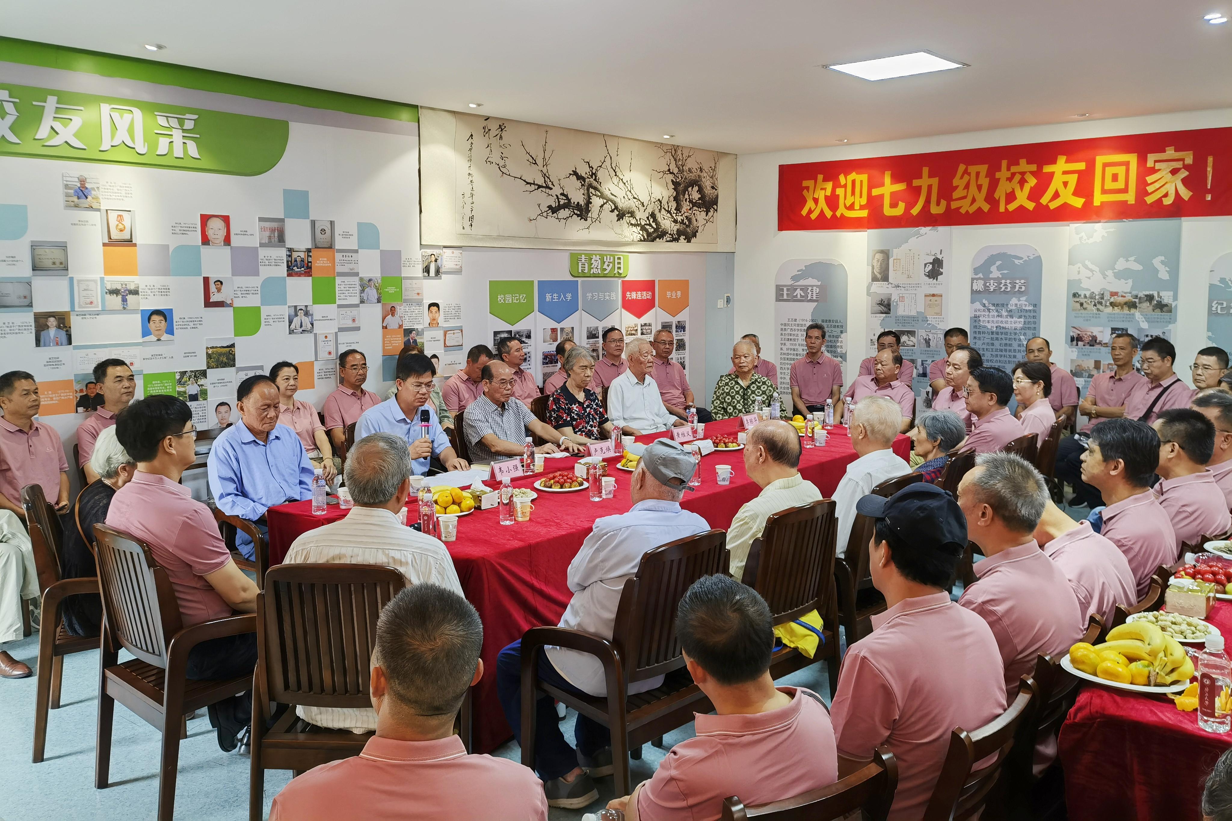 10月27日,tyc7111cc太阳成集团79级校友重返母校,欢聚一堂,在院史馆举办毕业四十周年师生联谊座谈会。太阳成tyc7111cc原副校长卢克焕、黄维义,tyc7111cc太阳成集团党委书记韦小强,副院长宁鹏飞,李琼华、梁自诚等9位教师代表,以及来自79级畜牧班、兽医一班、兽医二班的62位校友参加此次座谈,会议由太阳成tyc7111cc原副校长、79级校友代表罗廷荣主持。