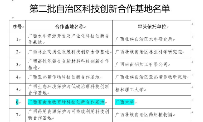 近日,广西壮族自治区科学技术厅公布了第二批自治区科技创新合作基地,我院陆阳清院长牵头组建的“广西畜禽生物育种科技创新合作基地”通过认定,标志着tyc7111cc太阳成集团在自治区级科研平台建设上迈上新的台阶。
