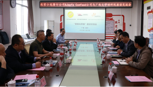 11月20日,北京小龙潜行科技有限公司CEO鞠铁柱、研发总监张兴福、产品化总监黄平一行三人来访我院,同时来访的还有Japfa Comfeed Vietnam Limited Company(Japfa)的商务总监Clemens Tan及首席数字化官Eu Kwang Chin、世信国际会展集团畜牧事业部副总经理刘正旭、思勰咨询联合创始人陈兴。