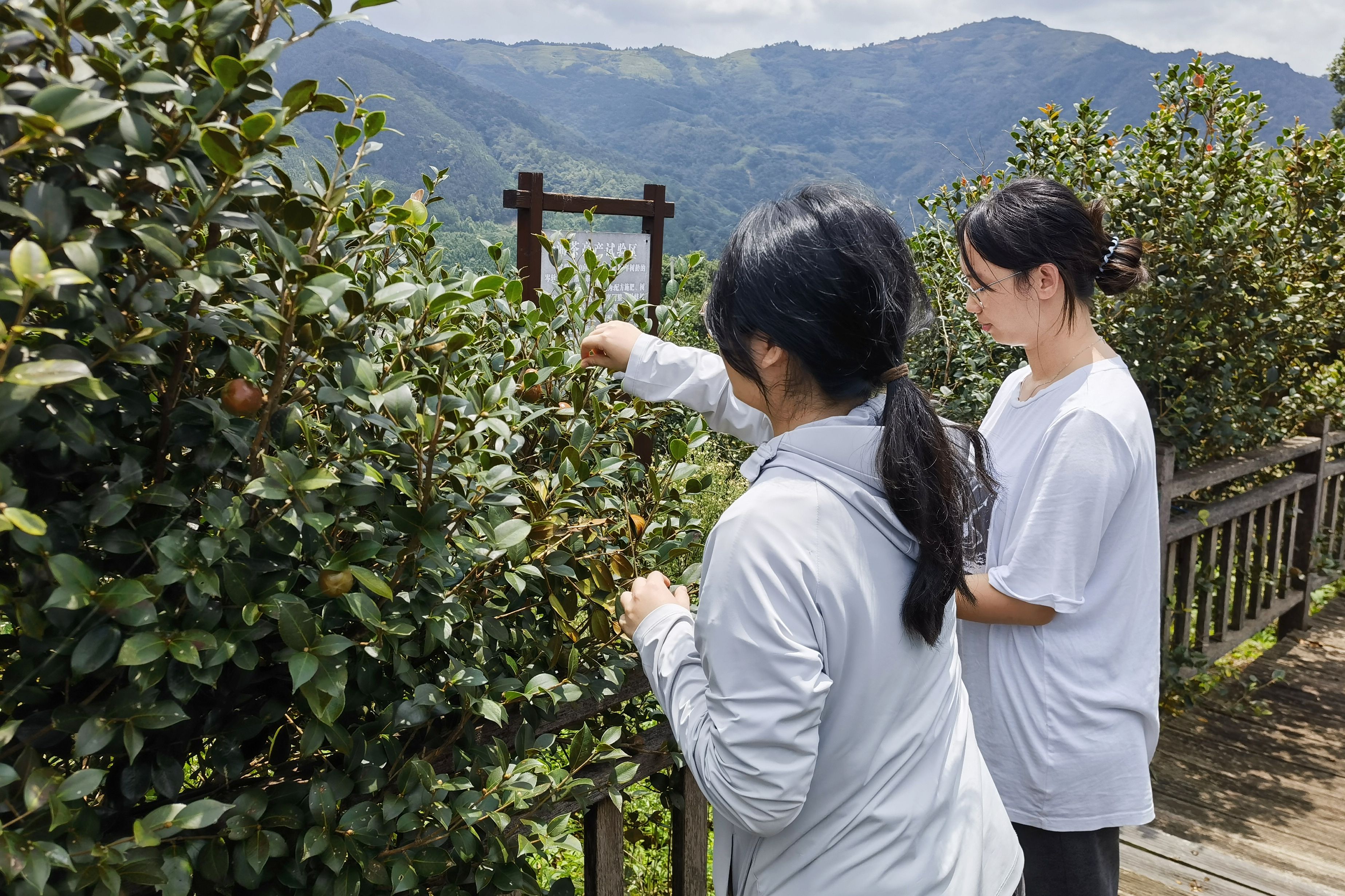 实践团师生来到了广西三椿生物科技有限公司,深入了解其“优良品种选育、示范基地种植、茶油精深加工、综合利用开发”产业模式,就易地搬迁政策、特色产业发展等方面与公司负责人进行座谈交流,并实地参观斗江镇思欧村宇塘油茶种植示范基地。