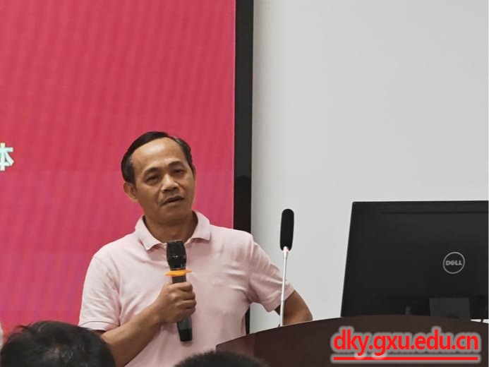 广西畜禽品种改良站种猪性能测定中心常务副主任、正高级畜牧师唐荣福做报告