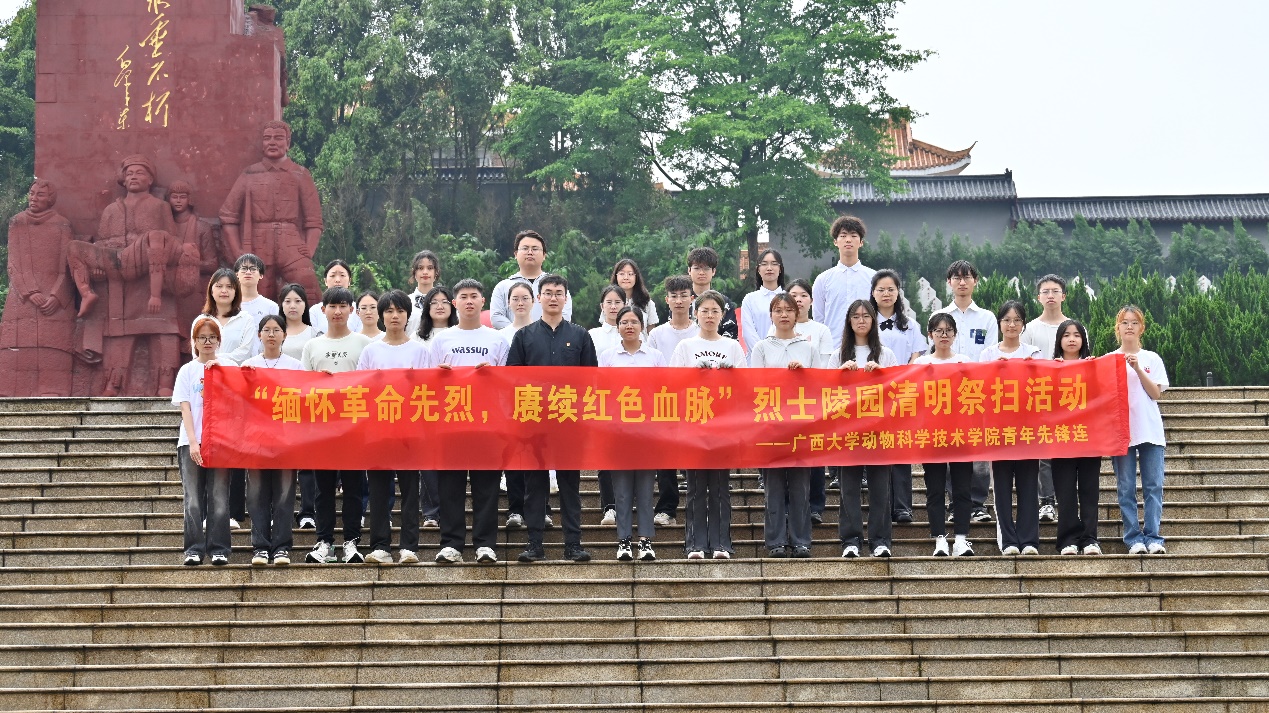 4月21日上午,tyc7111cc太阳成集团青年先锋连先后来到学院正门王丕建教授雕像前空地和广西壮族自治区烈士陵园,开展了主题为“缅怀革命先烈,赓续红色血脉”的清明祭扫活动,进行了一场跨越近百年时空的对话。
