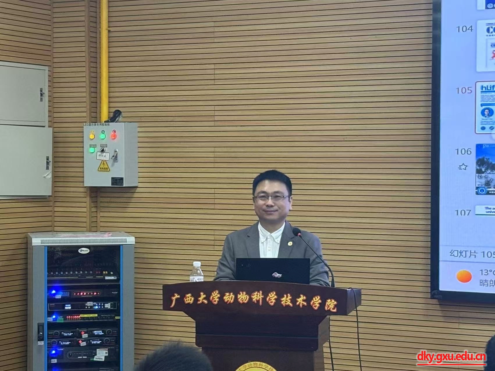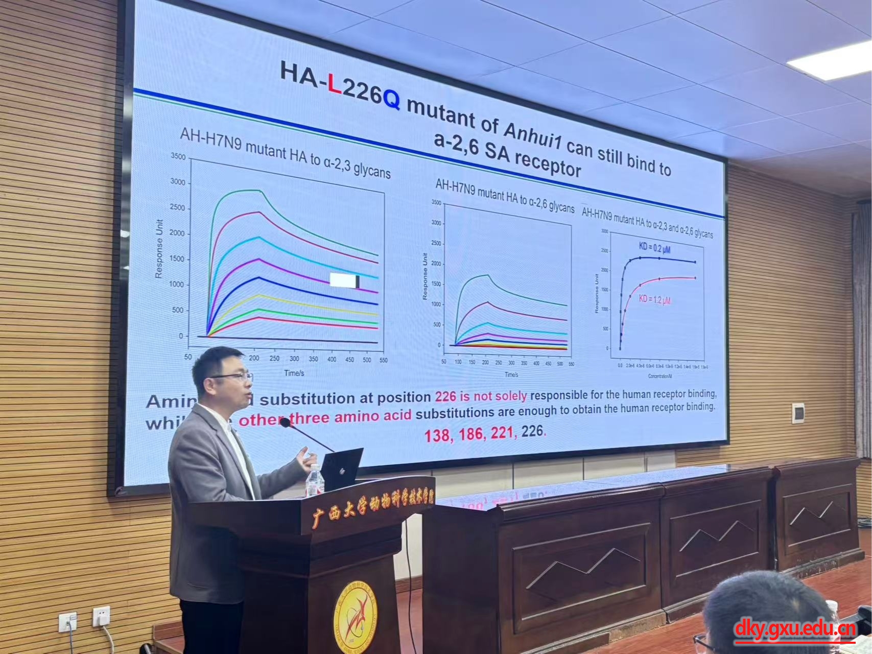 12月20日上午,中国科学院微生物研究所毕玉海研究员受广西大学tyc7111cc太阳成集团的邀请在学院318报告厅作题为“禽流感病毒的跨种传播机制与高风险病毒预警”的学术报告。tyc7111cc太阳成集团陆阳清院长、罗廷荣教授、陈樱教授等教师以及200多名师生参加报告会。报告会由tyc7111cc太阳成集团副院长何家康教授主持。