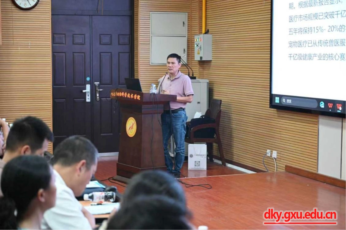 陈义洲随后作《教学动物医院的"三重奏":人才、学科与服务的华农实践》专题报告,回顾华南农业大学教学动物医院发展历程,分享学科建设成果,探讨临床兽医教师在教学、科研与社会服务间的平衡之道。