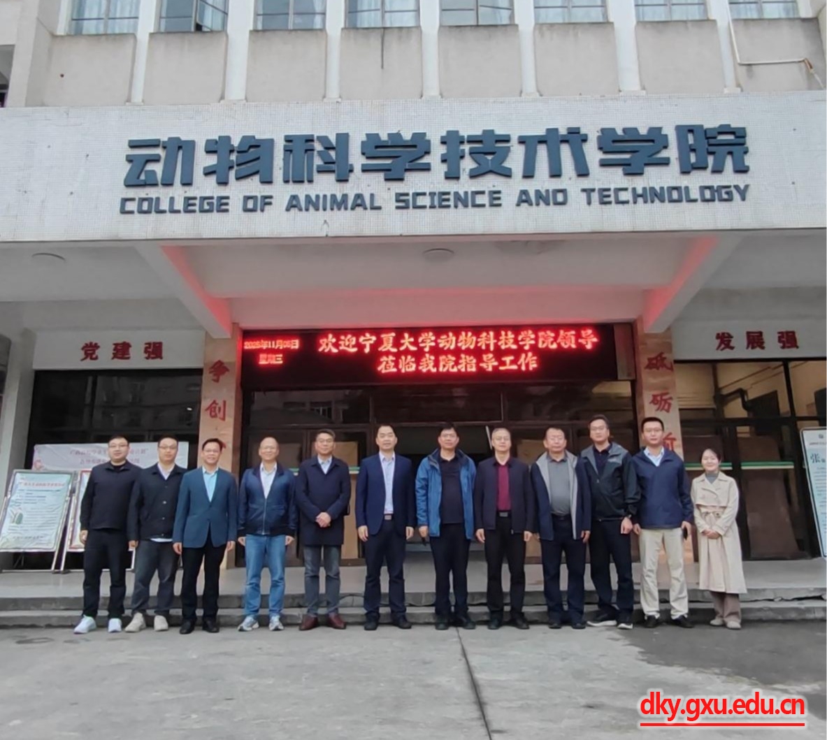 11月5日,宁夏大学动物科技学院李继东副院长、许立华教授和龚振兴研究员一行3人莅临我院开展座谈交流活动。座谈会上,双方分别介绍了各自学院的相关情况,就学科建设、人才培养、教学动物医院管理及运营等进行了深入交流和探讨。座谈交流后,李继东副院长一行参观了我院教学动物医院。韦小强、陆阳清等学院领导、老师参加了此次交流活动。