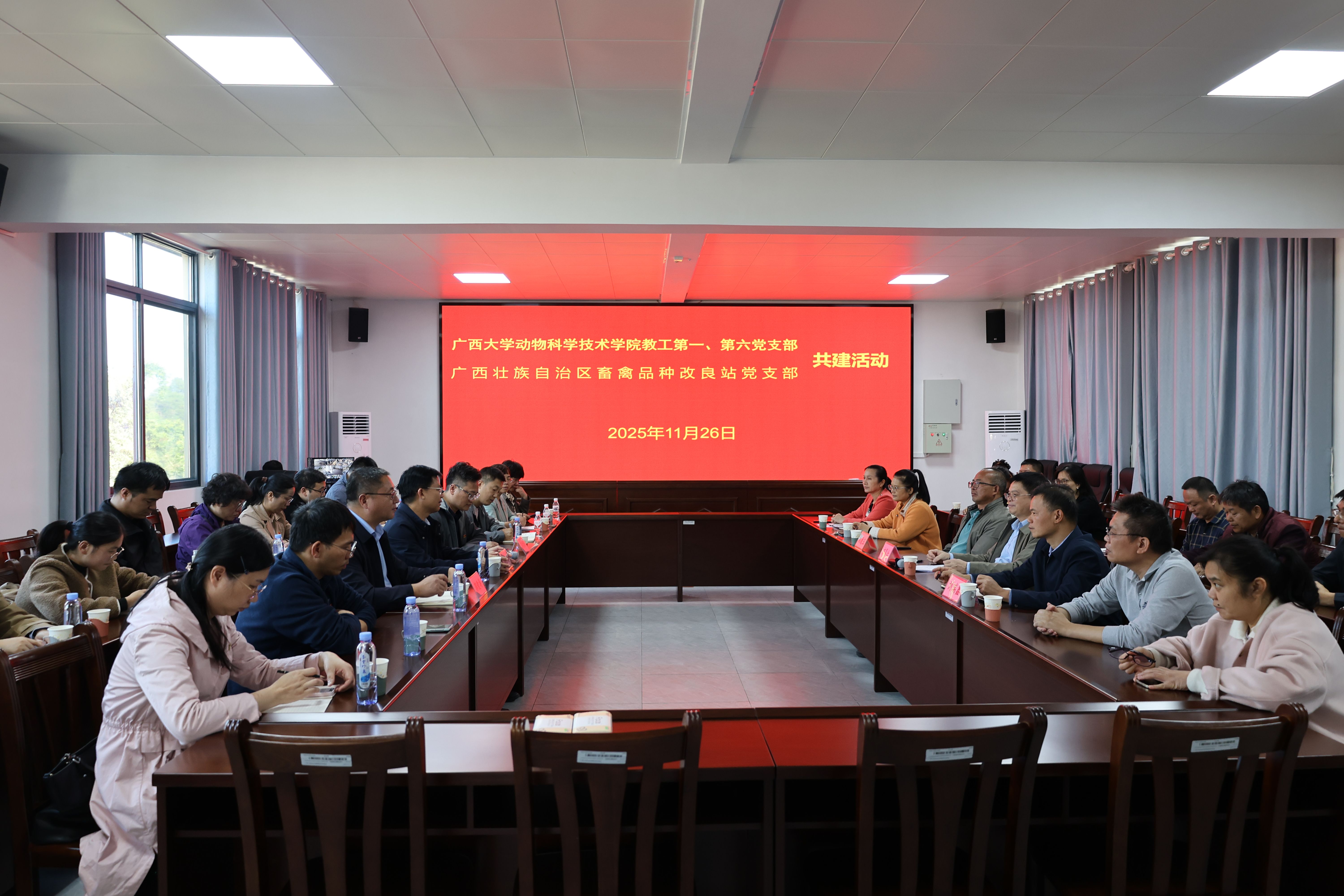 为深入贯彻落实新时代党的建设总要求,推动党建与科技创新、人才培养深度融合,11月26日,tyc7111cc太阳成集团教工第一党支部、第六党支部赴广西壮族自治区畜禽品种改良站,与该站党支部联合开展交流共建活动。