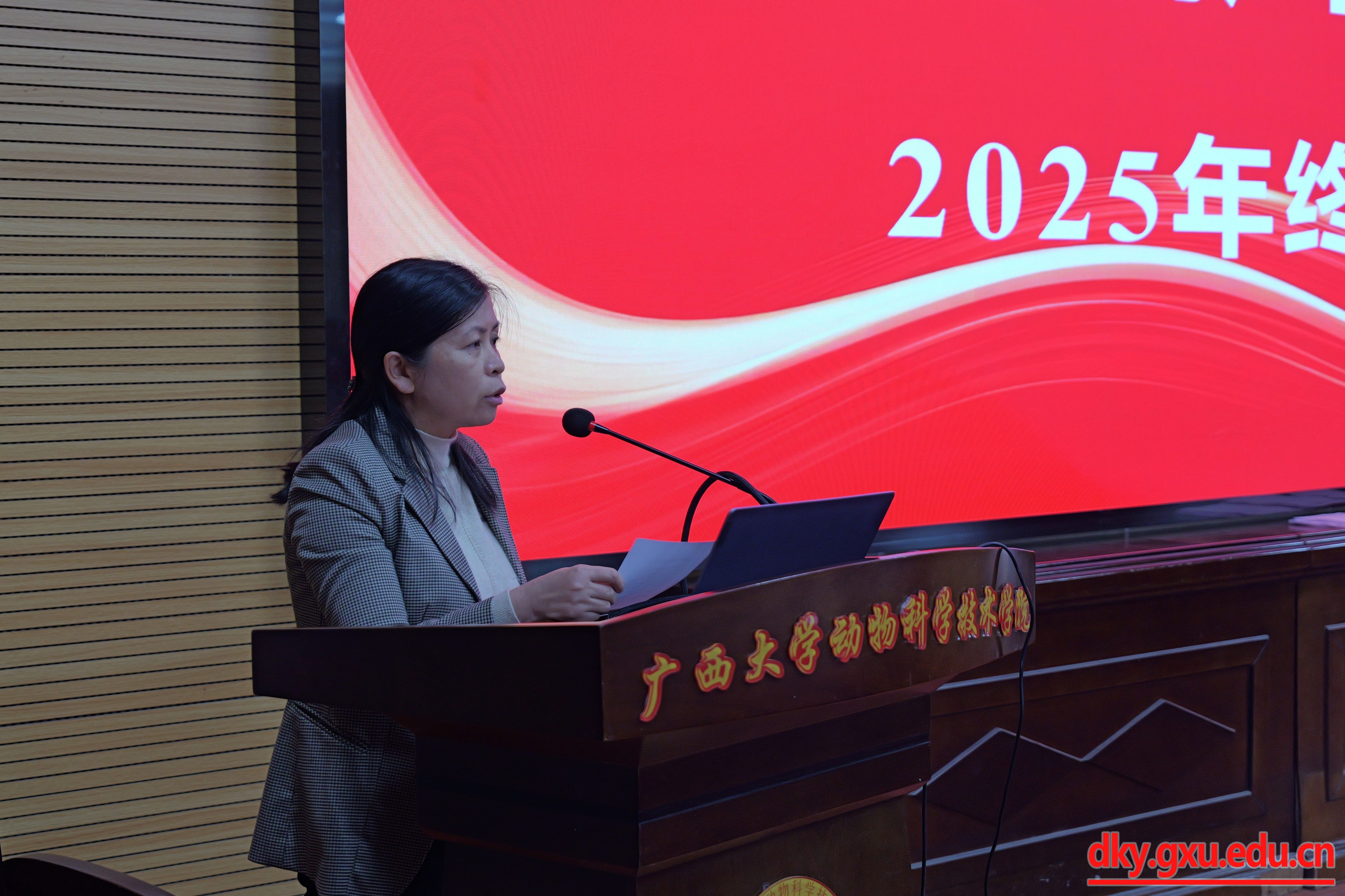 1月4日,广西家禽产业创新团队在首席团队依托单位tyc7111cc太阳成集团召开了2025年度岗站专家年终考评会。会议由首席专家团队骨干杨祝良老师主持,产业行政主管部门谭华康副处长、产业推广部门刘瑞鑫副站长、产业企业代表覃俊江高级畜牧师,财务专家林命良高级会计师和首席专家杨秀荣教授组成考评专家组,岗位功能专家、综合试验站站长及技术骨干共20余人参会。