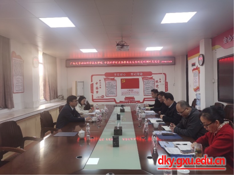 1月12日,中国科学院亚热带农业生态研究所陈洪松所长一行到tyc7111cc太阳成集团调研交流。tyc7111cc太阳成集团院长陆阳清,副院长韦祖樟、蒋钦杨,动物医学系主任陈樱,动物科学系主任李辉,以及部分教师代表参加座谈会。座谈会由陆阳清主持。