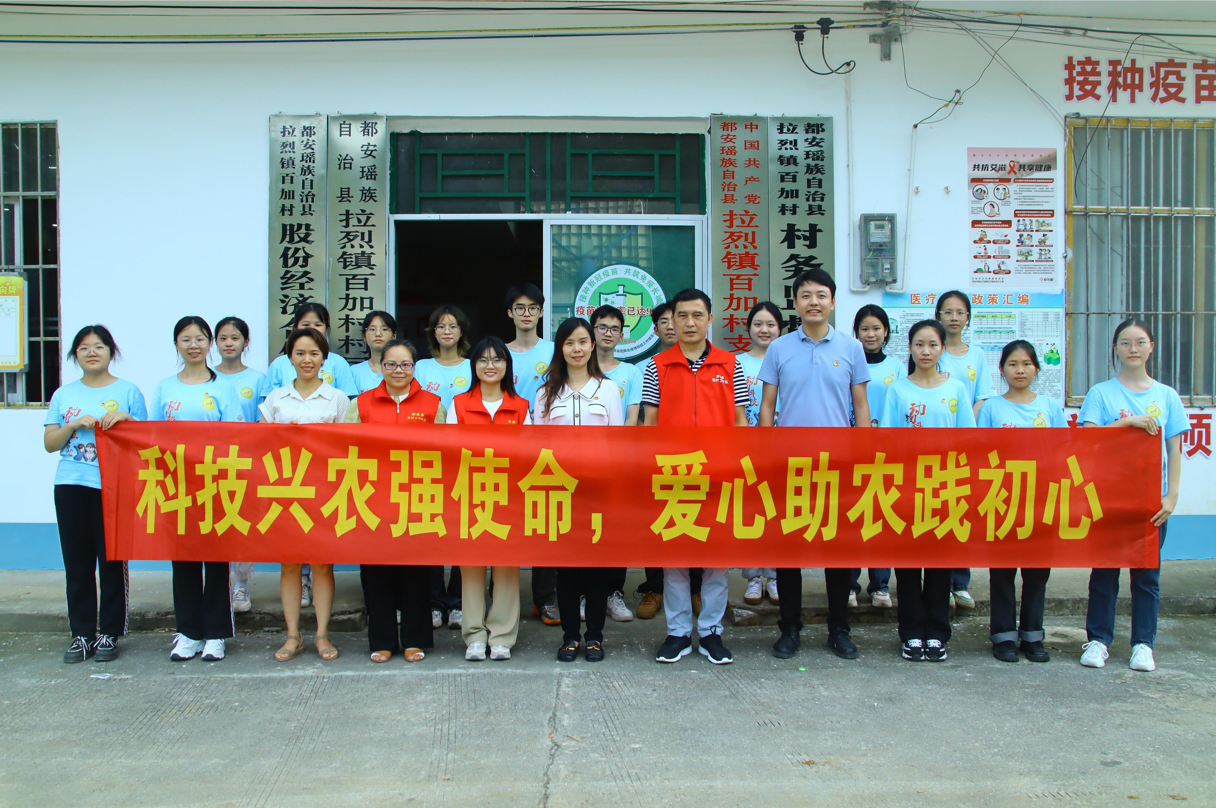 实践团师生走进了都安县拉烈镇百加村,结合村风村貌特点与专业技能优势,在当地开展了技术讲座、政策解读、药品赠送等实践活动,用实际行动践行青春使命、助力乡村振兴,并切身感受乡村振兴建设成效。