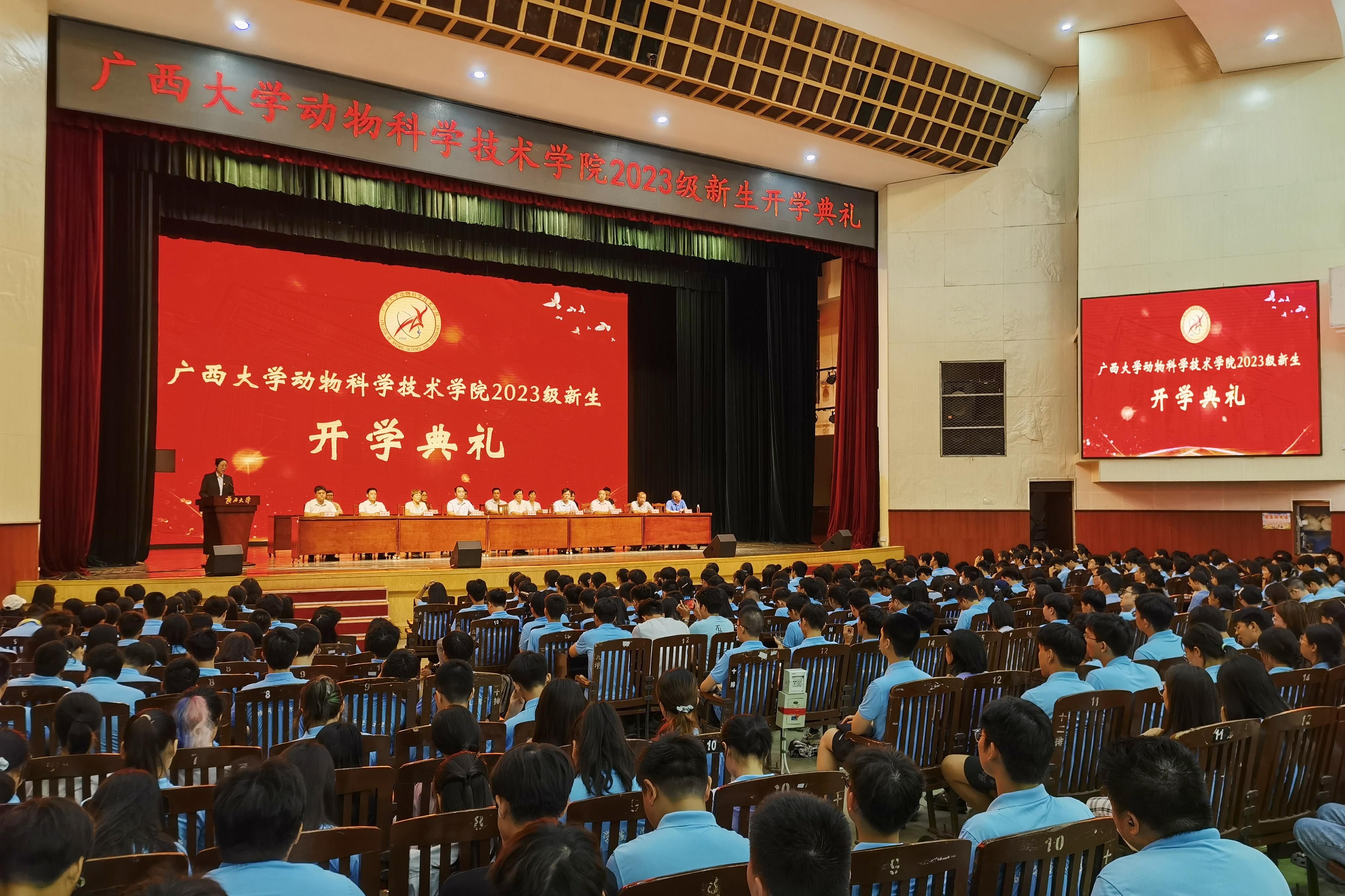 9月17日晚上,tyc7111cc太阳成集团2023级新生开学典礼在大礼堂举行。动物遗传育种与繁殖学科知名专家石德顺,tyc7111cc太阳成集团党委书记韦小强,院长陆阳清,农牧产业发展研究院院长司红彬,tyc7111cc太阳成集团原书记、五级职员顾慕娴,副院长宁鹏飞、何家康、韦祖樟出席典礼。tyc7111cc太阳成集团党委副书记沙建主持典礼。知名专家和教师代表、班主任、辅导员以及2023级584名新生参加活动。