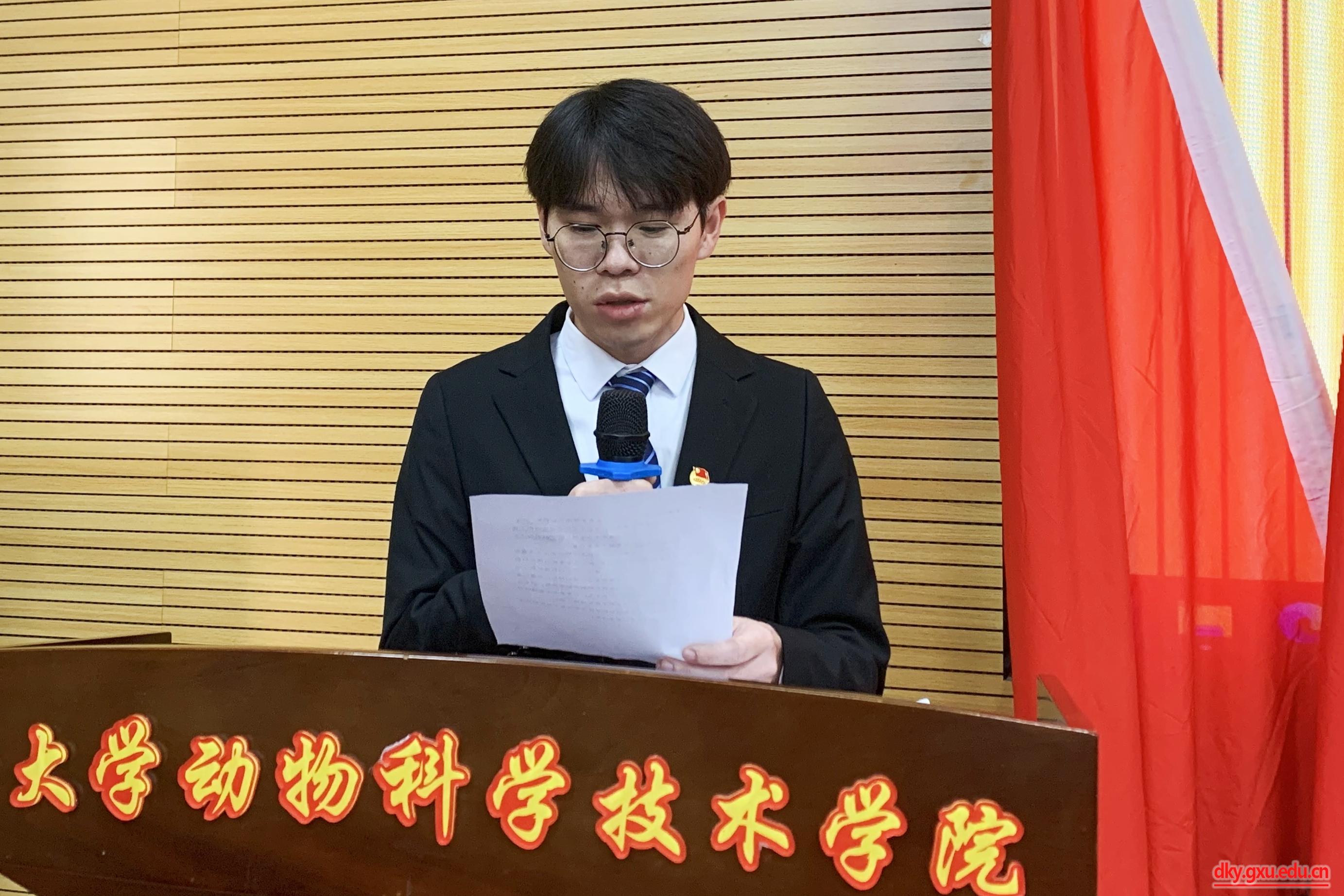 太阳成tyc7111cc研究生会主席团成员廖文杰同学、计算机与电子信息学院研究生会主席团成员王子威同学分别在大会上致辞。