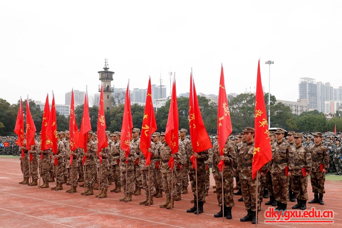伴随着庄严的国歌声,五星红旗迎风飘扬,军训动员大会正式开始。