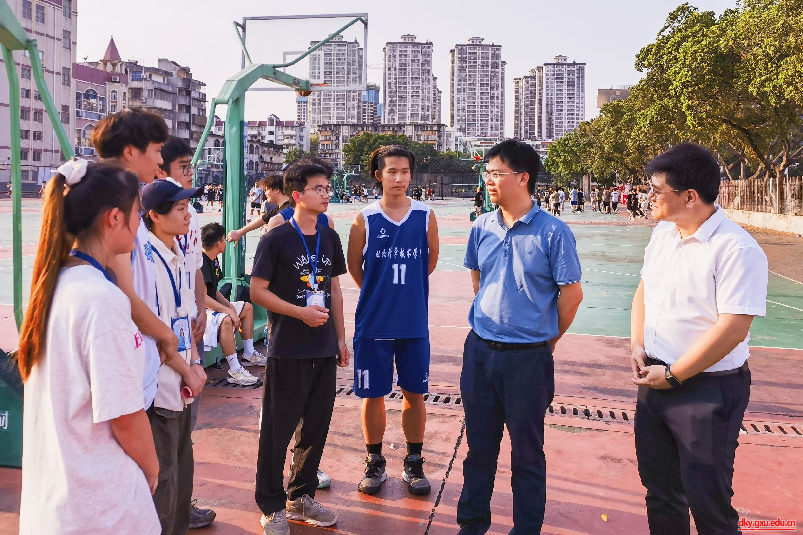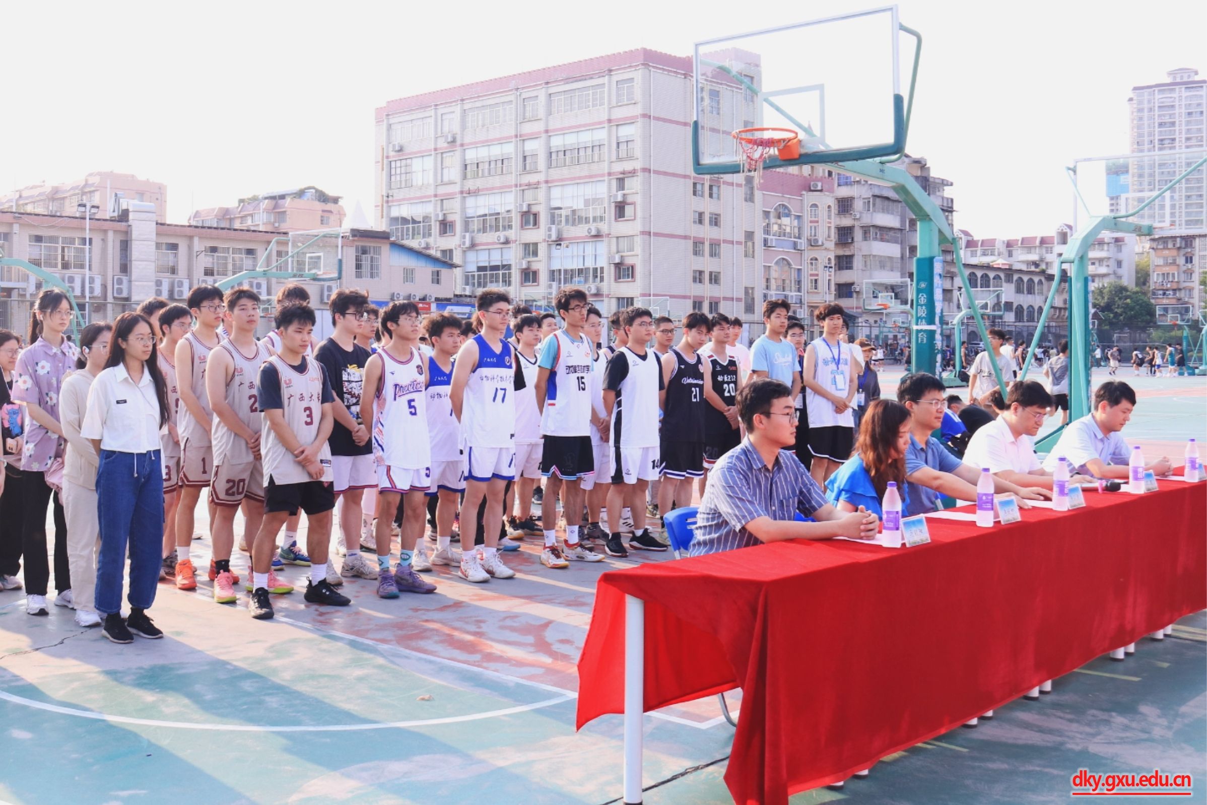 为弘扬中华体育精神,丰富课余文化生活,4月16日下午,tyc7111cc太阳成集团在东校园篮球场举行2024年篮球赛开幕式。tyc7111cc太阳成集团党委书记韦小强,党委副书记沙建,团委书记李丽娜,团委副书记刘诚,辅导员马朝阳,以及各支参赛队伍参加此次活动。