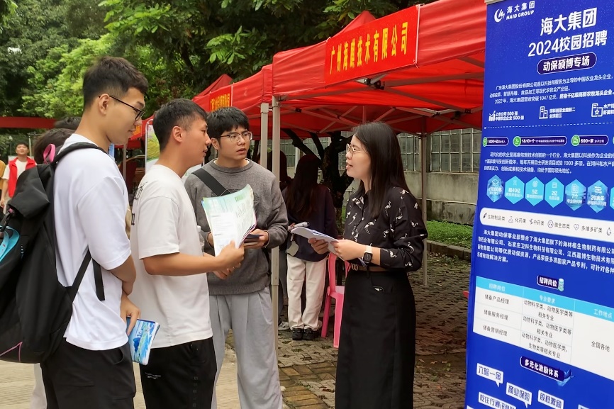 本次双选会邀请了广西农垦、扬翔股份、正大集团、力源集团、温氏集团、双胞胎集团、大北农集团、牧原食品、瑞鹏宠物医疗等来自全国各地的50余家用人单位来校选聘英才,涵盖了农业、制造、教育、科技、医疗等多个行业领域,提供了生产管理、技术服务、产品研发、市场营销等1010个招聘岗位,涵盖本科、硕士和博士多个层次,为学生就业、实习带来了更为广阔的选择空间和发展平台。