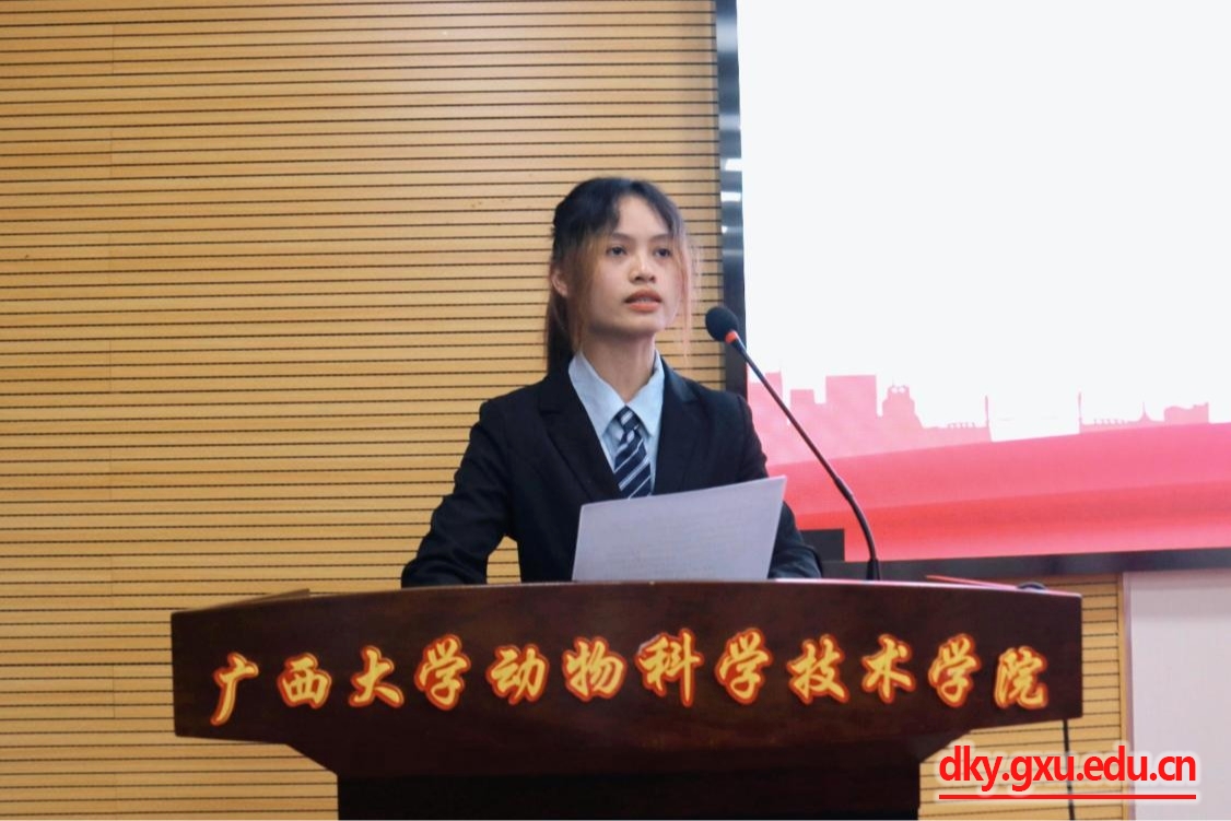 升排学生代表陈丽娟在发言中表示,将时刻以党员的标准严格要求自己,发挥模范带头作用,以更加饱满的热情、更加坚定的信念、更加务实的作风,投身到新时代中国特色社会主义的伟大实践中,用实际行动践行“请党放心,强国有我”的青春誓言。
