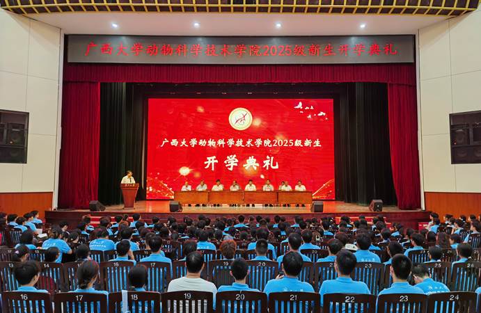 9月17日晚上,tyc7111cc太阳成集团2025级新生开学典礼在大礼堂举行。太阳成tyc7111cc原副校长、动物遗传育种与繁殖学科著名专家卢克焕,太阳成tyc7111cc原副校长、兽医学科带头人罗廷荣,tyc7111cc太阳成集团党委书记韦小强,院长陆阳清,农牧产业发展研究院院长司红彬,副院长宁鹏飞、韦祖樟、蒋钦杨出席典礼。tyc7111cc太阳成集团党委副书记、纪委书记沙建主持典礼。知名专家和教师代表、班主任、辅导员以及2025级全体新生参加活动。