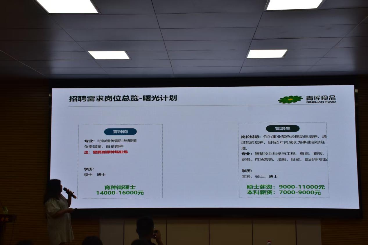 针对学子们最为关切的就业市场现状,主讲嘉宾重点剖析了当前农牧行业就业环境的核心特点与人才需求结构。结合青莲集团及行业整体人员数据,嘉宾清晰呈现了研发创新、生产管理、市场营销、质量管控等关键环节的人才需求分布,强调行业对专业功底扎实、实践能力突出、具备跨界思维的复合型人才需求日益旺盛。