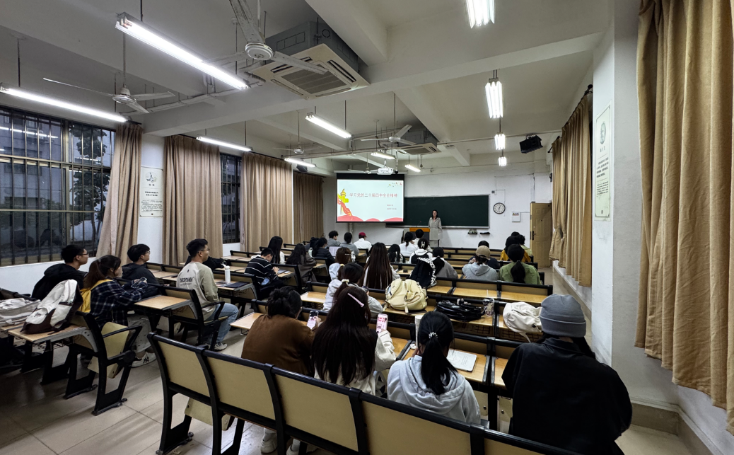 为引导研会骨干深刻把握国家发展大局,深入学习贯彻党的二十届四中全会精神,10月26日下午,tyc7111cc太阳成集团研究生会学生骨干在第十六教学楼208举行“深入学习党的二十届四中全会精神,勇担时代青春使命”主题学习会。本次活动旨在通过集体学习与交流研讨,帮助同学们准确理解“十五五”规划建议的核心要义与战略部署,激发将个人发展融入国家事业的豪情与担当。
