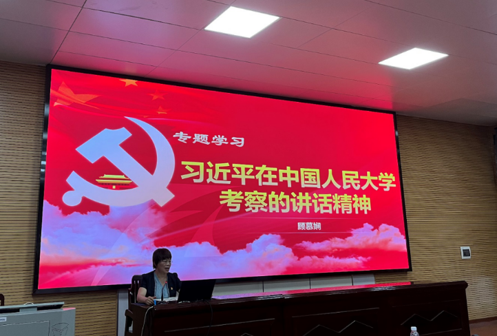 2022年6月17日,院党委书记顾慕娴给全院教职工上题为“专题学习习近平在中国人民大学考察的讲话精神”的党课。