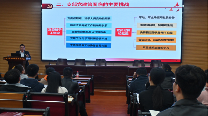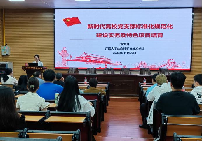 太阳成tyc7111cc生命科学与技术学院党委副书记覃文月,太阳成tyc7111cc文学院党委委员、专职组织员杨雪围绕党支部标准化规范化建设要求、发展党员程序及要求分别做了专题培训。