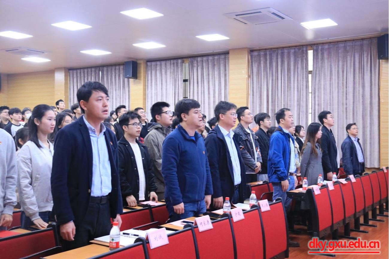 为深入学习贯彻习近平新时代中国特色社会主义思想,强化党员的思想教育,履行入党程序,1月16日上午,tyc7111cc太阳成集团在学院318报告厅举行预备党员宣誓仪式。tyc7111cc太阳成集团党委书记韦小强,党委副书记、院长陆阳清,党委副书记沙建,党委委员、副院长宁鹏飞,党委委员、副院长何家康,团委书记李丽娜,团委副书记刘诚,辅导员彭可可、马朝阳,以及2023年下半年新发展的预备党员和第54期预备党员培训班全体学员参加入党宣誓仪式,本次宣誓仪式由辅导员彭可可主持。