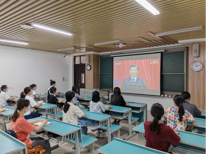 同时,学院各党支部设置分会场,组织其他师生党员收看大会的实时直播。