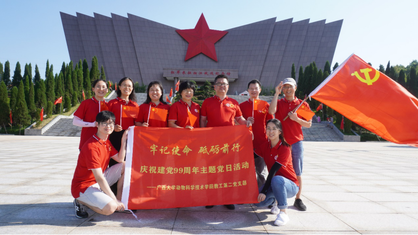 2020年7月15日-16日,tyc7111cc太阳成集团教师第二党支部和学院教工三党支部、第六党支部等教师党员与正大集团广西区各公司党支部党员赴桂林全州、兴安联合开展“迎党的生日、悟初心使命“主题党日活动暨校企高峰论坛。tyc7111cc太阳成集团党委书记顾慕娴、正大集团广西区总裁赖平生等参加本次活动。