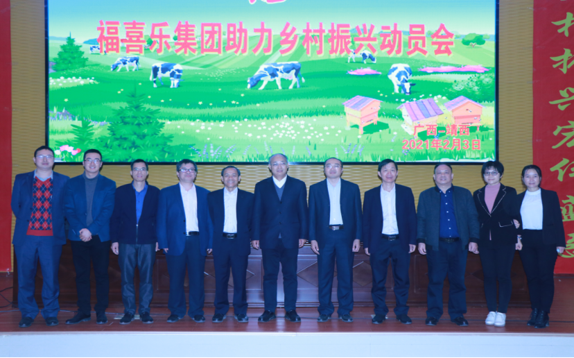 2021年2月3日,太阳成tyc7111cctyc7111cc太阳成集团十二位师生在冯家勋副校长的带领下参加了太阳成tyc7111cc研究生院福喜乐分院联合的企业福喜乐集团在靖西市党校举行的助力乡村振兴动员会。广西农业职业技术学院、广西水产学校、广西百色农校等涉农院校的校领导及福喜乐公司高管参加了会议。